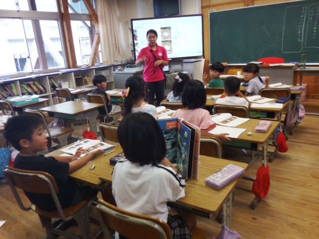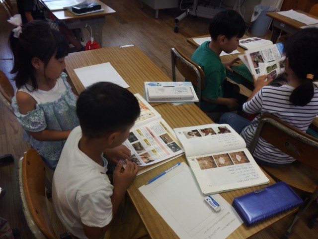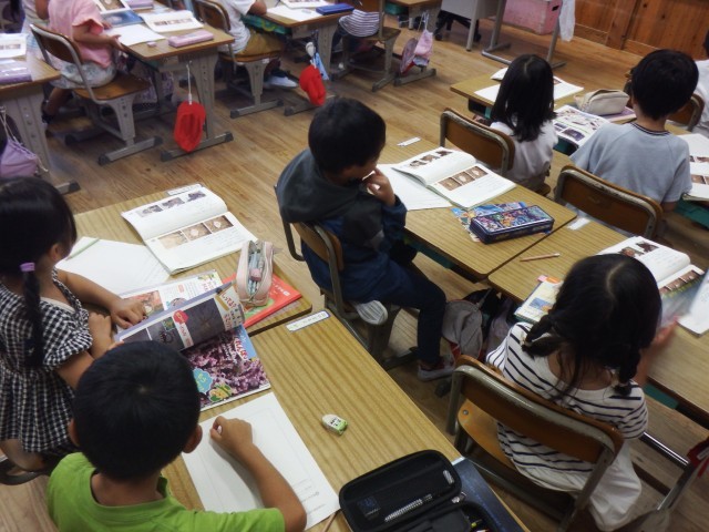 1年生 国語「うみのかくれんぼ」うみのかくれんぼ!どんな生き物がかくれているかな?本で調べています。いろいろな生き物がかくれていますね。