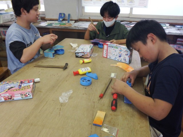 6年生 図画工作「テープカッターづくり」作業に没頭中です!完成は近い!?