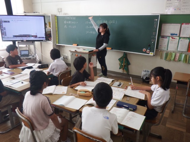 5年生 算数 少人数授業の様子です。今日は、「どんなとき、余りの数がでないか調べよう!」をめあてに問題に取り組みました。