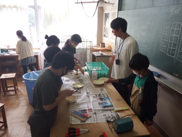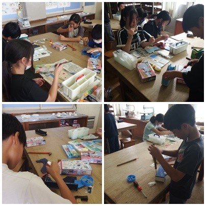 6年生 図画工作「テープカッターづくり」作品完成に向けて、各自作業に没頭中です!イメージ通りの作品になっていますか?