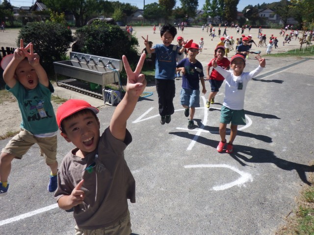 2時間目の放課「なかよしタイム」秋晴れが気持ちが良いです!元気いっぱい運動場で遊びました。