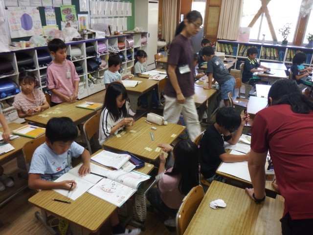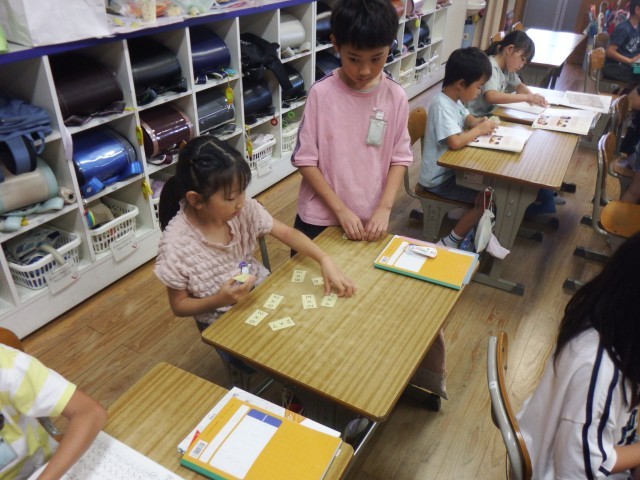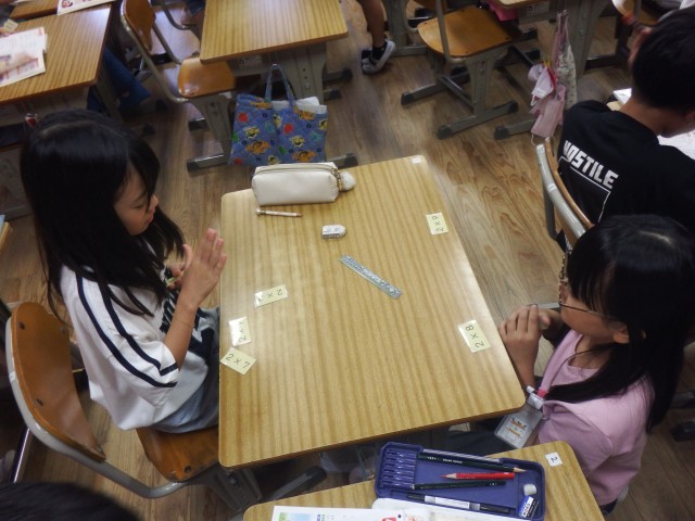 2年生 算数「かけ算」ペア学習を行いました。計算カードを使って、問題を出し合いながら練習を重ねました。