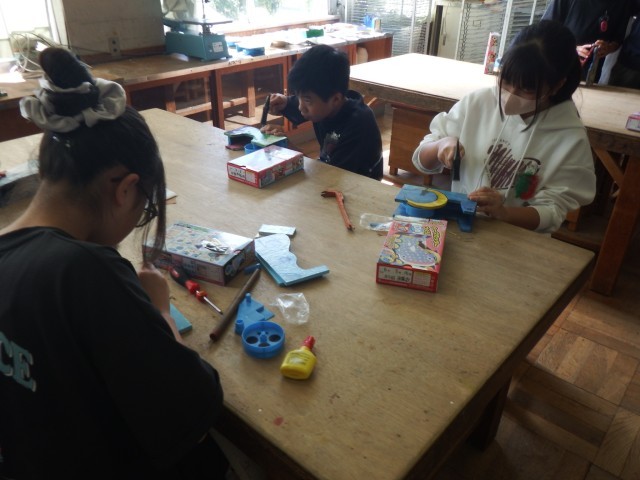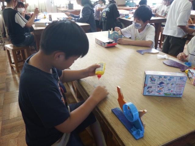 6年生 図画工作「テープカッター作り」作業は後半戦です!頑張ってお気に入りの作品を作ってくださいね!