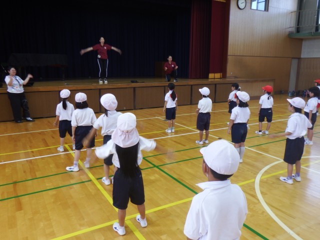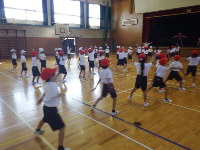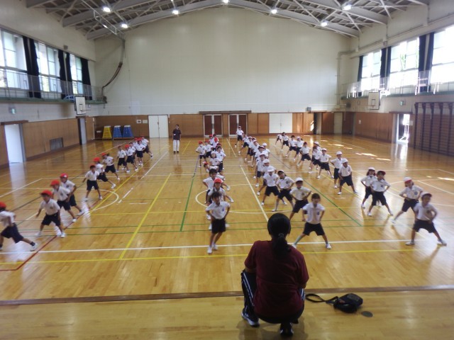 1年生 体育 運動会「えがお・かわいさ・100%」運動会に向けて練習に取り組みました!リズムにのって、元気いっぱい体を動かすことができましたね♪