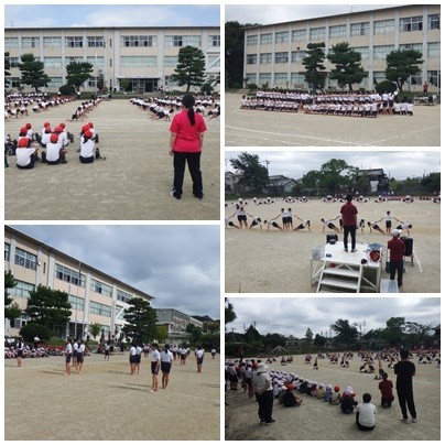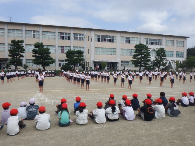 6年生 運動会に向けて!集団演技「常翔」を披露しました。1年生から5年生は6年生の立派な姿に釘付けです!素敵な集団演技を披露してくれてありがとう!当日が楽しみです♪
