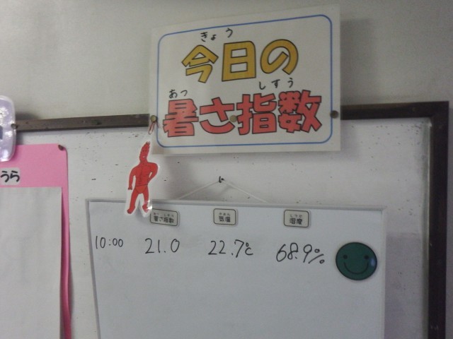 「注意」気温は低く、湿度が高い1日となっています。今週の土曜日は運動会です。今のところ午後から雨降りになりそうです。