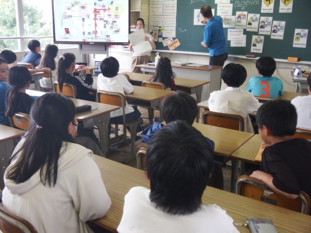 5年生 外国語活動「道案内をしよう!」今日は、英語で道案内をする方法を学びました。
