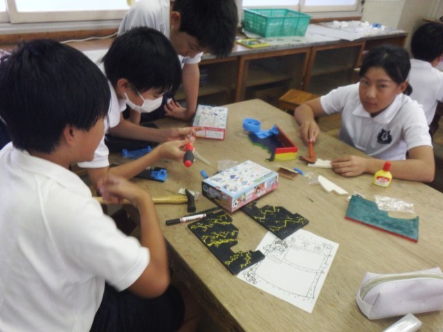 6年生 図画工作「テープカッター作り」いよいよ完成です!素敵な作品ができましたね♪