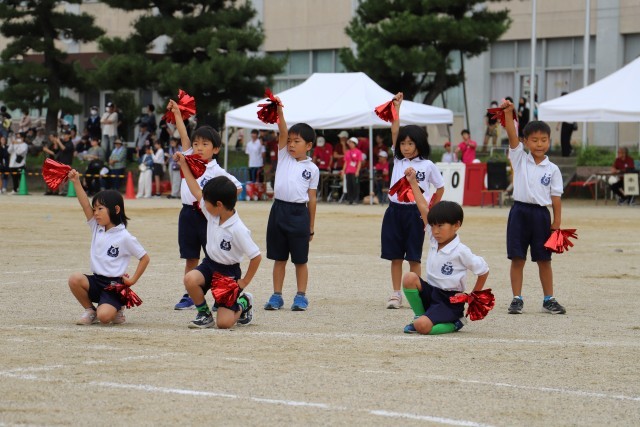 1年生は小学校に入って初めての運動会でした。徒競走とダンス、ダンシング玉入れに参加しましたが、どの子も全力で頑張ったよと満足そうに話していました。ダンスもこれまでそれぞれが目標をもって練習を続け、みんなで力を合わせて可愛いだけじゃないかっこ良い姿が見せられたと思います。