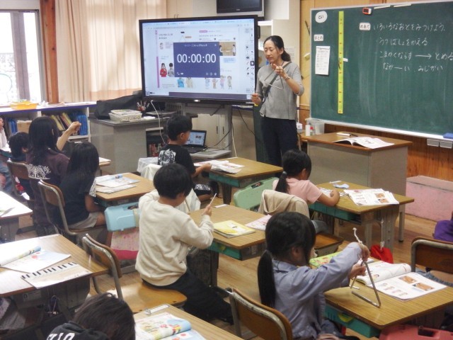 1年生 音楽 ねいろとつよさ「いろいろな音をみつけよう」今日は、トライアングルからどんな音がだせるのかを体験しました。うつ場所や強さを変えて楽しみました♪