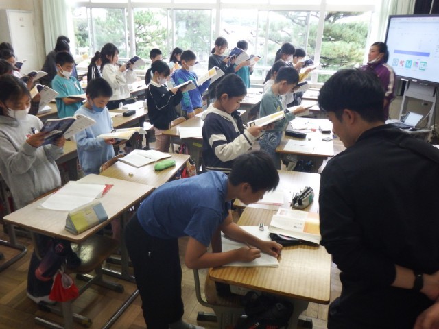 5年生 国語「秋の夕」季節の言葉について学びました。秋の長夜、行く秋など季節を連想させる言葉がたくさん出てきますね。