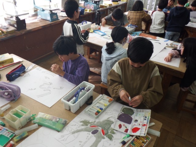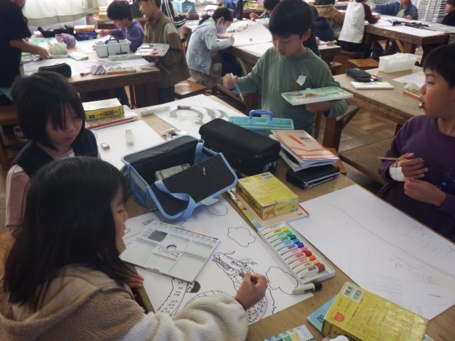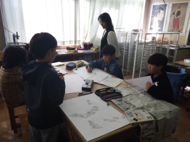 4年生 図画工作「読書感想画」読書感想画に取り組ました。立派な竜が描かれいます!どんな作品になるか楽しみです。