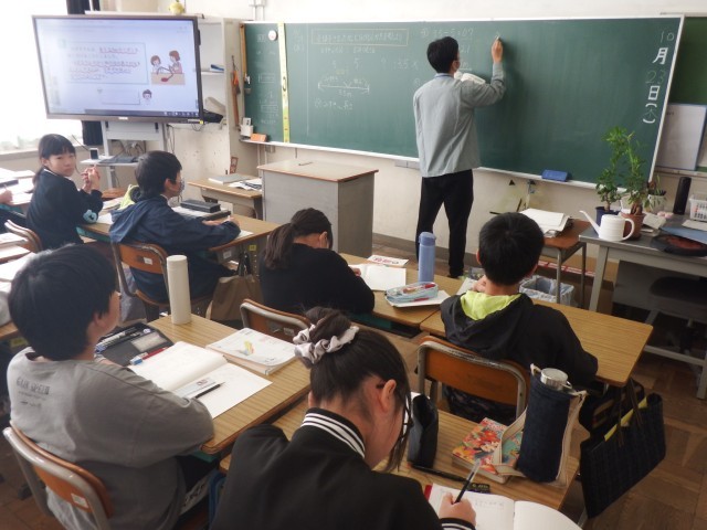 6年生 算数「比とその利用」少人数授業の様子です。全体の量からそれぞれの比の分け方を考えました。