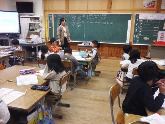 2年生 算数「かけ算」今日は、7の段の九九を学びました。文章問題にも挑戦しましたね!