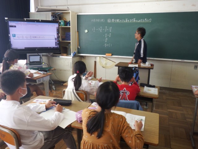 5年生 算数「分数」少人数授業の様子です。今日は帯分数の計算を行いました。たくさんの練習問題に取り組むことができました!