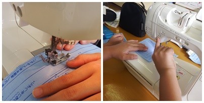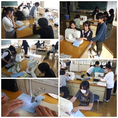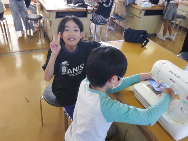 5年生 家庭科「ミシンにトライ!」明日からエプロン作りが始まります!今日は、ミシンの扱い方を予習しました。