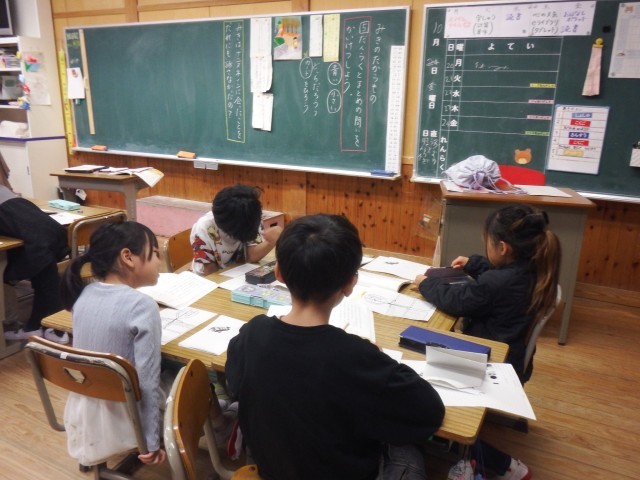 2年生 国語「みきのたからもの」教科書の読解を行っています。児童が感じた「問い」を教科書を読み込みながら解決していきました。