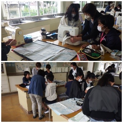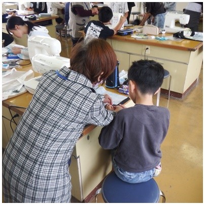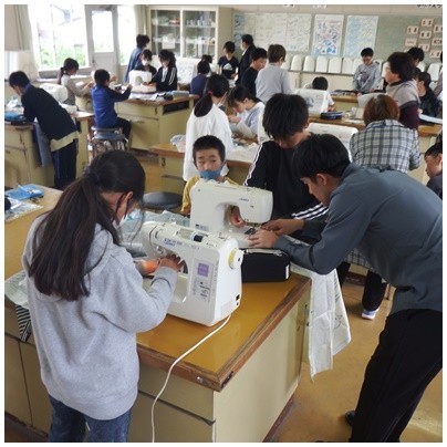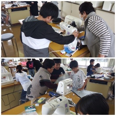 5年生 家庭科「ミシンにトライ!」5年生にとって、初めてのミシンを扱う授業です。地域から6名の支援者に来校いただき、共にエプロンを作っていきます。ミシンが安全に扱えるように支援をいただいおります。