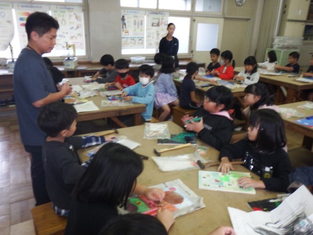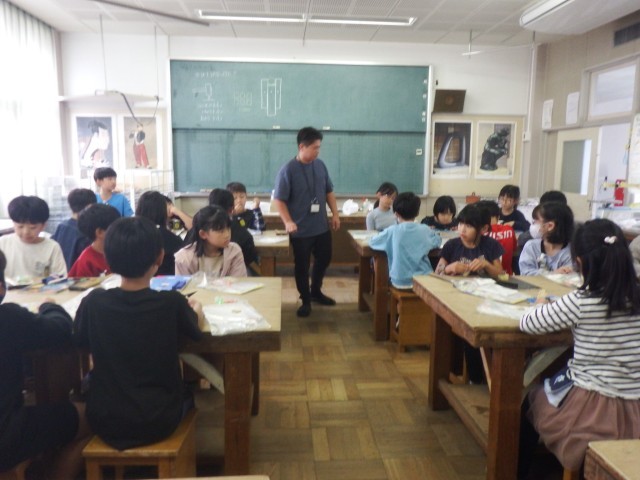 3年生 図画工作「くぎうちトントン」落ち着いて作品の制作に打ち込んでいます。丁寧に丁寧に作業をしています。