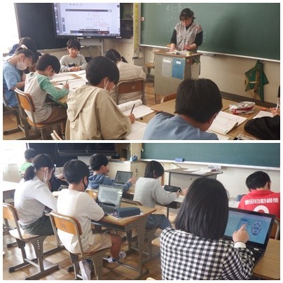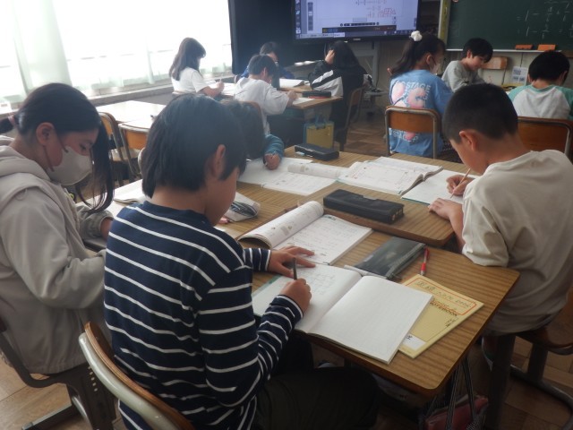 5年生 算数「分数」少人数授業の様子です。練習問題に取り組みました。頑張って計算に取り組んでいました!