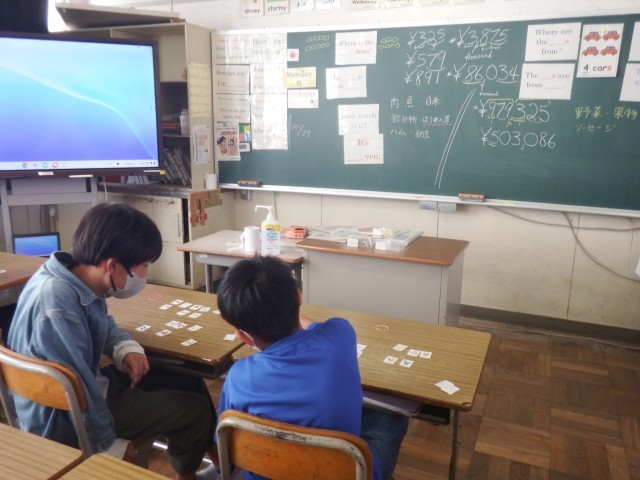 6年生 外国語活動「How much ・」いくらですか? ◇◇◇円です。と英語での言い方を学びました。ペアで練習をすることができましたね。