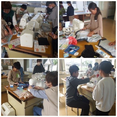 5年生 家庭科「ミシンにトライ!」いよいよエプロン作り終盤戦です。今日は完成を目指します!地域から授業支援者として、5名の方にご来校いただきお手伝いをしていただいております。お世話になりますが、どうぞよろしくお願いします。(城東の里運営協議会)