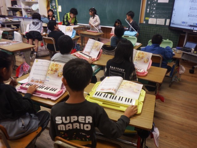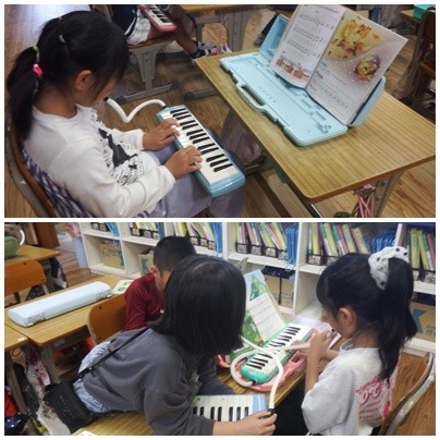 2年生 音楽「こぎつね」鍵盤ハーモニカでこぎつねを演奏しています。今日は、先生の前でも演奏することができましたね!頑張っています♫
