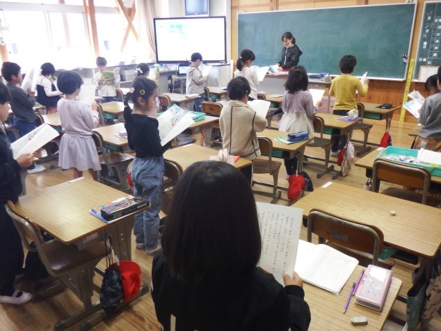 1年生 国語 教科書の音読中です。今日は綺麗な秋晴れです。体調に気をつけながら過ごしてくださいね!