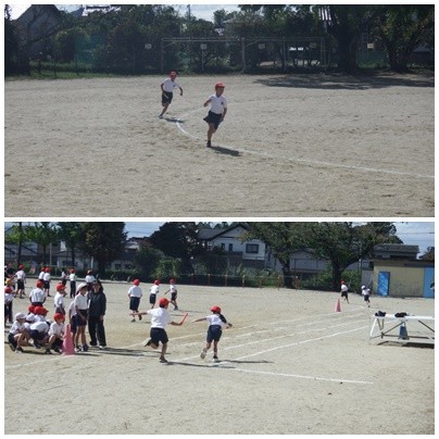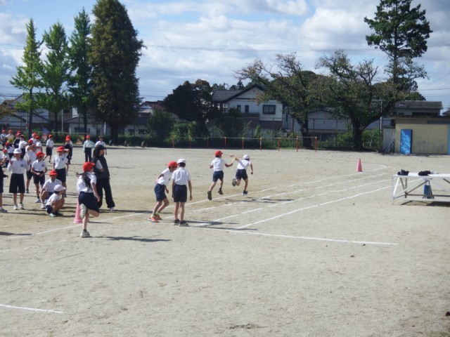 4年生 体育「走・跳の運動(かけっこ、リレー)」リレー競技を行いました。運動会なりの盛り上がりでした!4年生のパワーを感じることができました♪