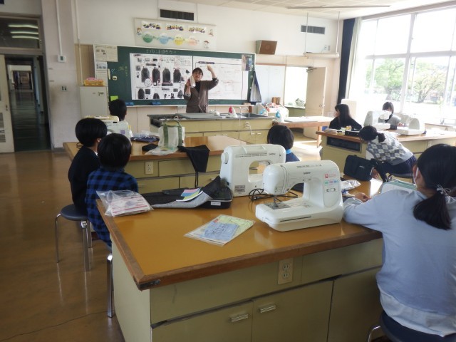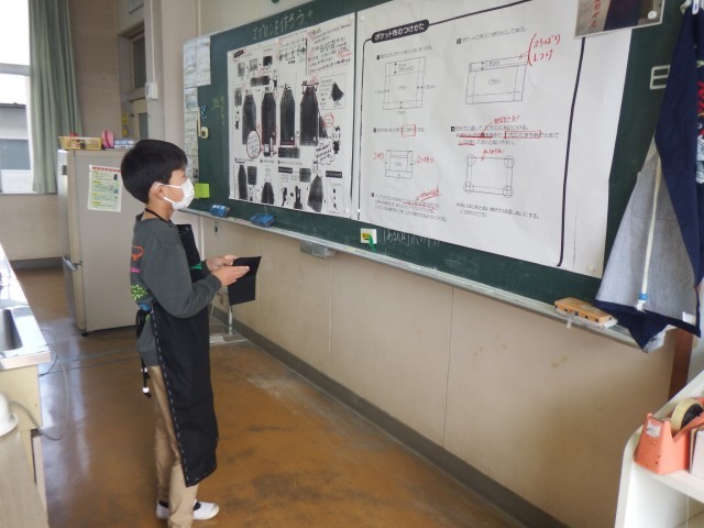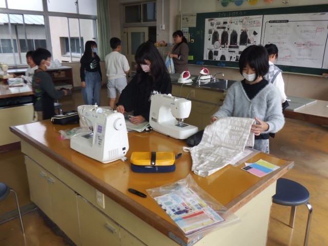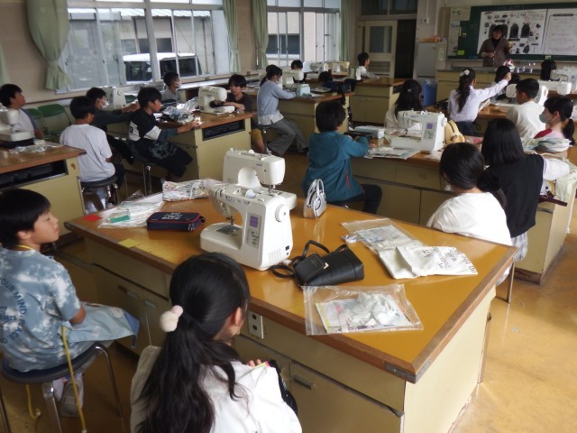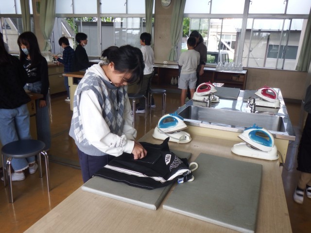 5年生 家庭科「ミシンにトライ!」今日は最終仕上げです。アイロンで模様を付けました。