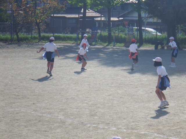 5年生 体育「タグラグビー」運動場で元気いっぱいタグラグビーに取り組むことができました!