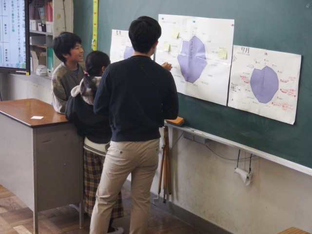 5年生「学級力」10月の学級で行ったアンケートをもとにレーダーチャートにして、活動をふりかえりました。良いところ、改善するべきところを話合いました。今日から活かしていきましょう!