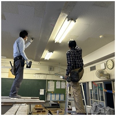 お休みの間に、教室の天井の張り替え工事を行いました。綺麗に生まれ変わりました!