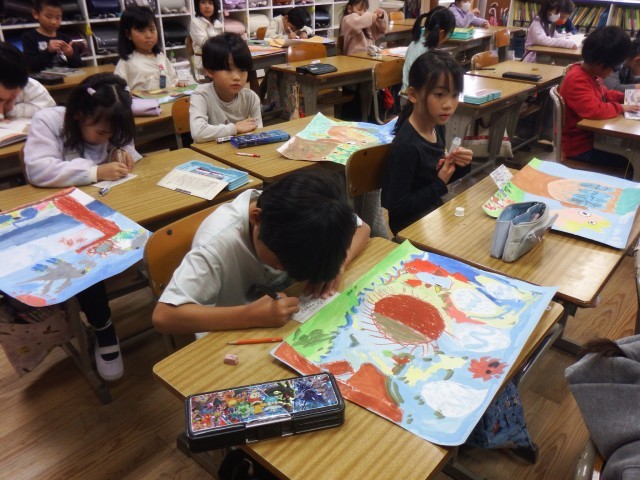 2年生 図画工作「読書感想画」読書感想画が描き上がりました!素敵な作品になりましたね。