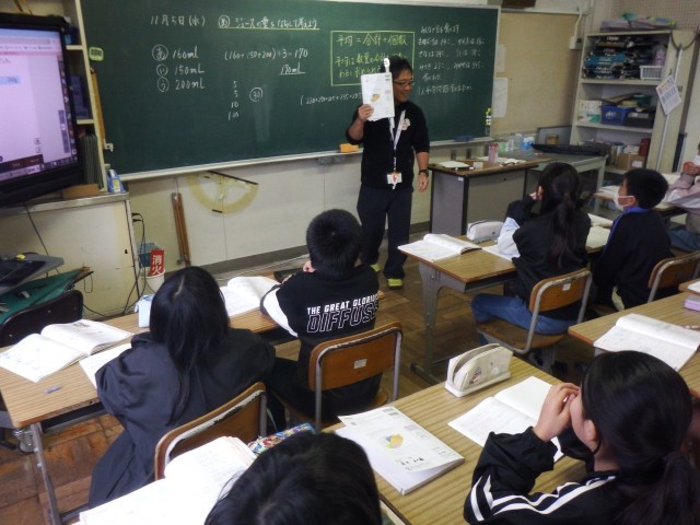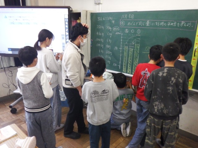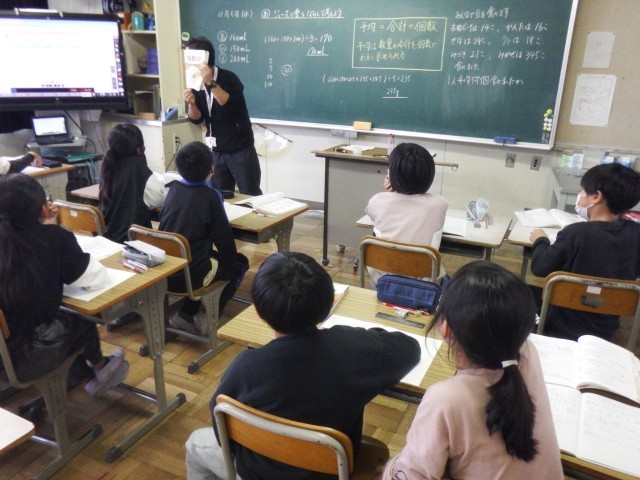 5年生 算数「平均とその利用」少人数授業の様子です。平均とは何かを知り、いくつかの数から平均を求める練習をしました。
