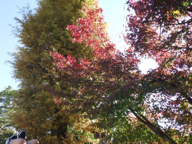 秋が深まり、最低気温が8℃以下の日も増えてきました。校庭の木々が少しずつ色づき始めています!
