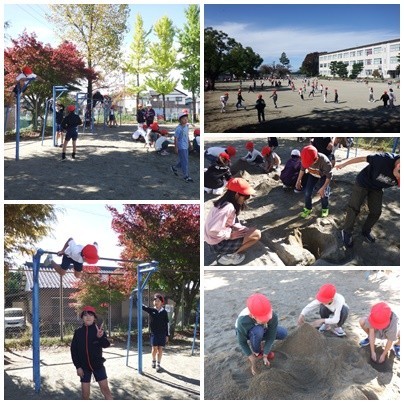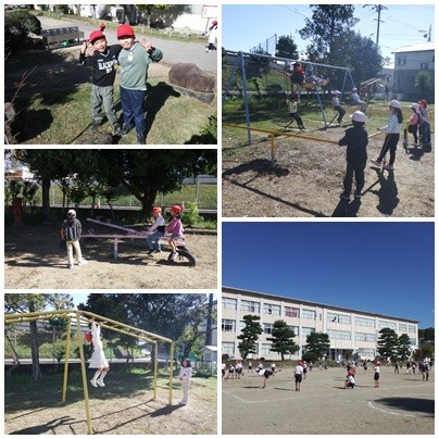 2時間目の放課「なかよしタイム」です。青空が広がって気持ちが良いですね!遊んだ後は、手洗いうがいをしっかりしましょう!