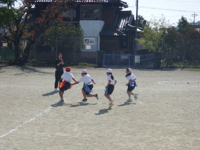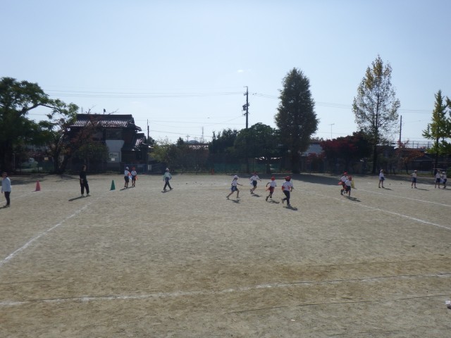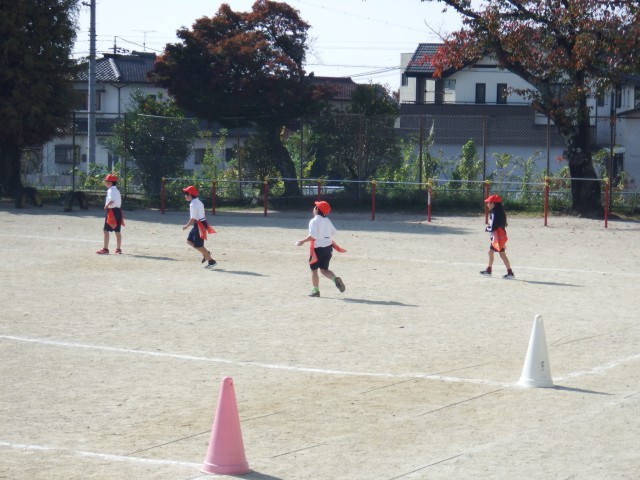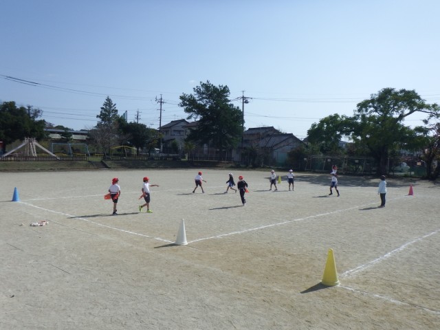 4年生 体育「ゴール型ゲーム タグラグビー」タグラグビーに取り組みました。コートいっぱい走り周りゲームを進めました。ルールを理解して楽しく活動することができましたね。