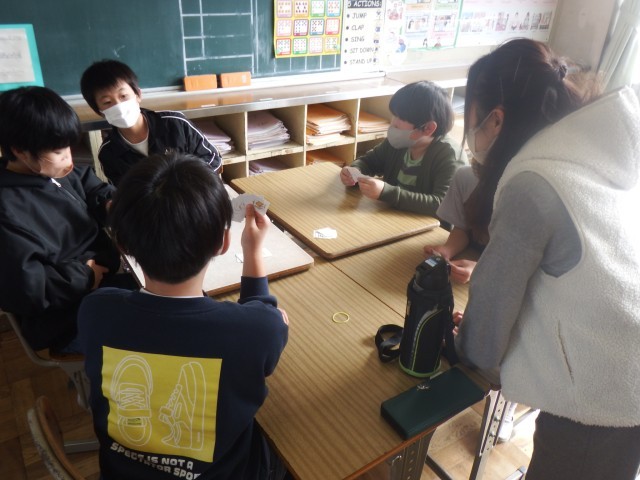 5年生 外国語活動「What do you want・・・」ゲーム形式で、楽しく英会話を行い学びを深めることができました。カードに描かれた様々な物の名前も英語で言えるようになりましたね!