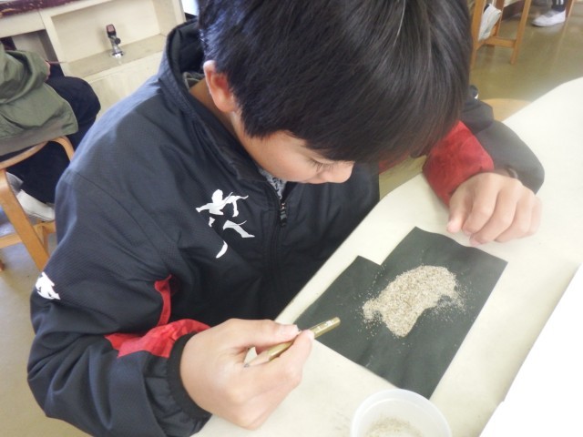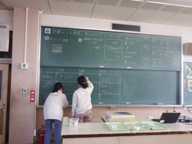 6年生 理科「土地のつくりと変化」今日は、地層について学習しました。地層がなぜ縞模様に見えるのかを考えました。
