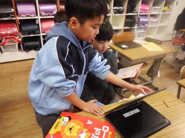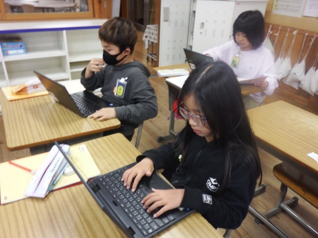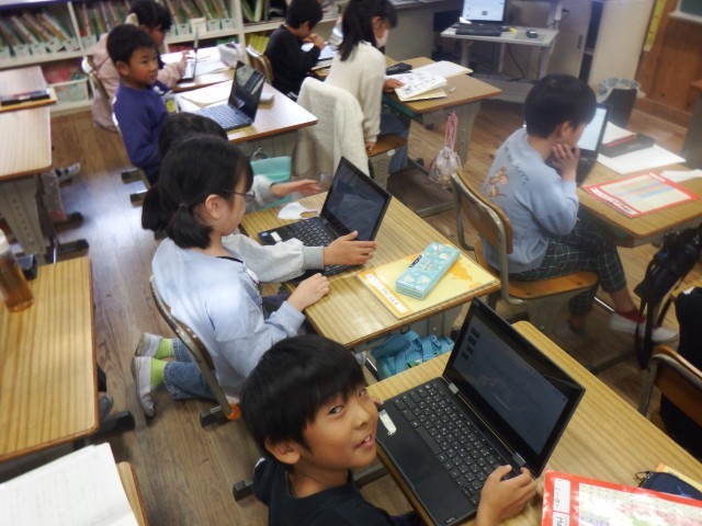 3年生 社会「わたしたちのくらしとスーパーマーケットの仕事」まとめ学習を行いました。タブレットを使って、スライドを使っていました。