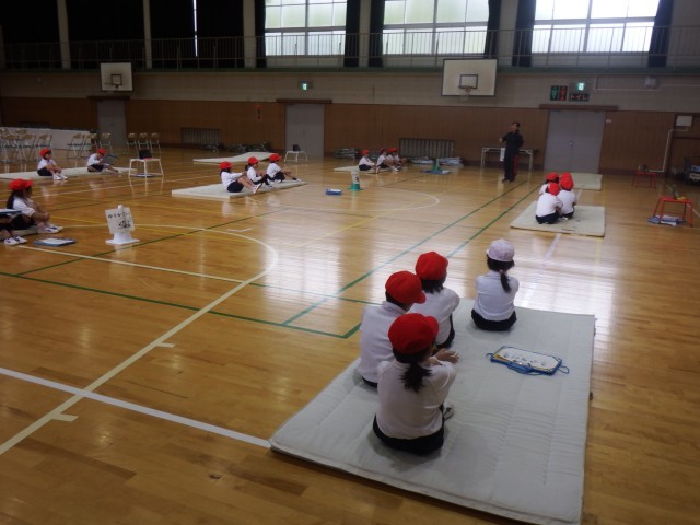 1年生 体育「マットを使った運動遊び」体育館でマットと運動を行います。タブレットで自分の技を確認しながら練習を重ねました!