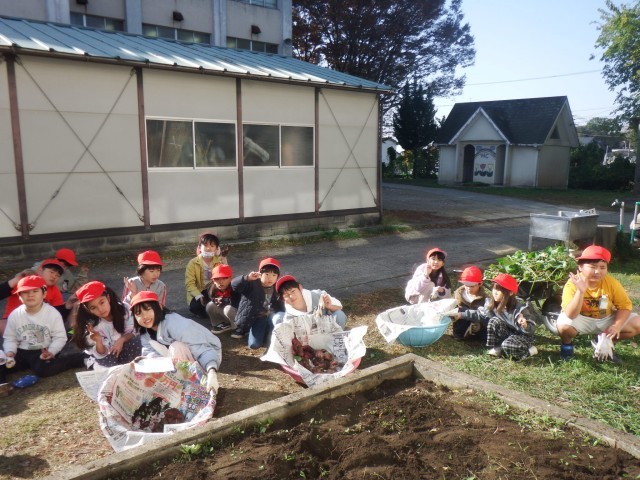 校庭の畑からサツマイモを収穫しました!一生懸命にほりあげましたね。立派なサツマイモでしたね♪