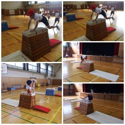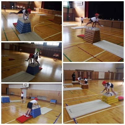 3年生 体育 跳び箱を行いました。助走、手の付く位置、踏みきりなど課題をもって練習に取り組みました。