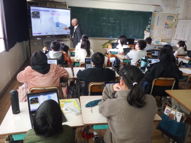 6年生 ラインズのICT授業 タブレットを活用して、プログラミングを行いました。