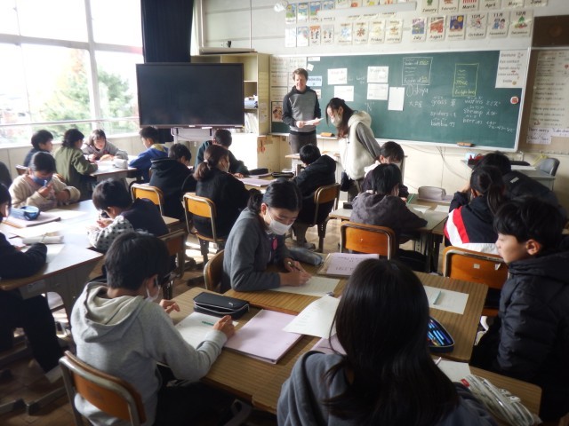 6年生 外国語活動「What do      eat?、「Where do     live?」Where do ~ live? 、What do ~ eat? の聞き方や答え方について学習をしました。