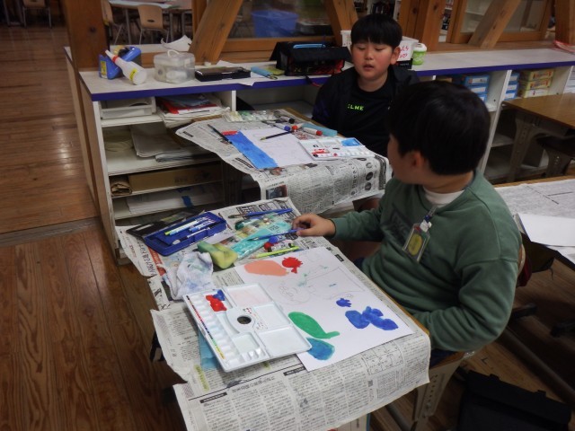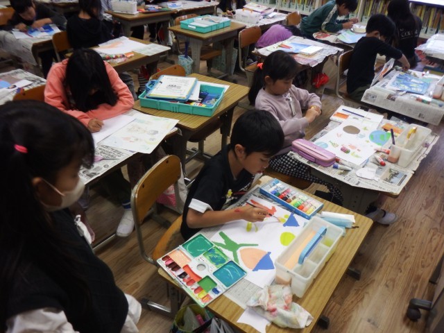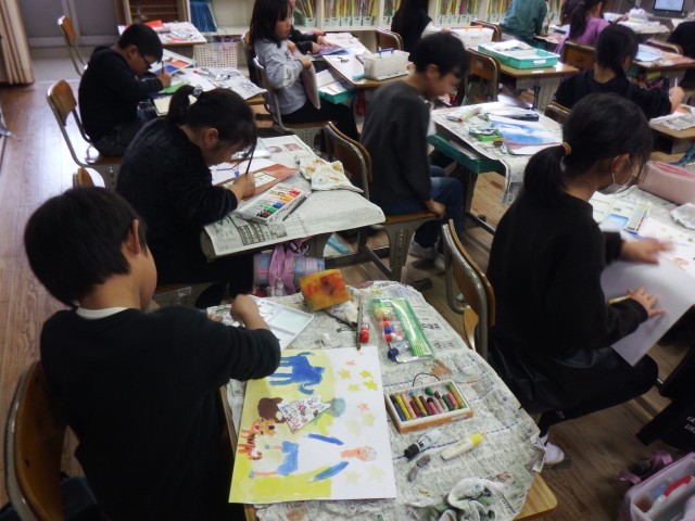3年生 図画工作「読書感想画」作品制作に力が入ります。12月の完成を目指して一生懸命に頑張っています。