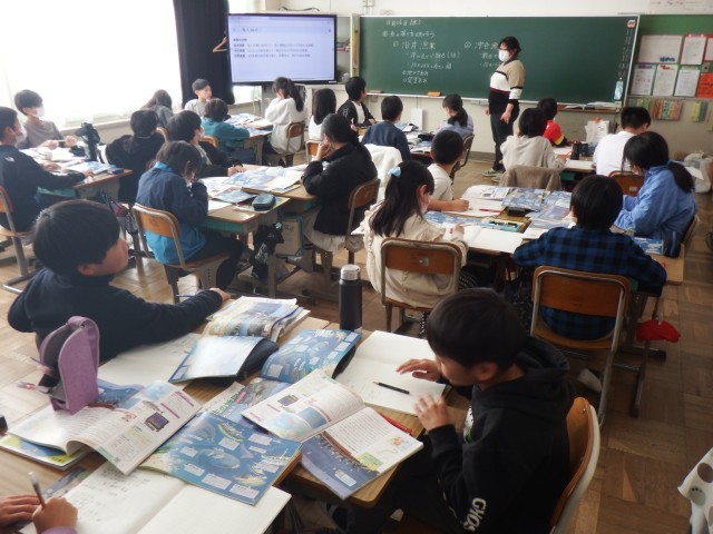 5年生 社会「水産業がさかんな地域」今日は漁業について学習を行いました。沿岸漁業、沖合漁業など様々な漁業があることを知ることができましたね。