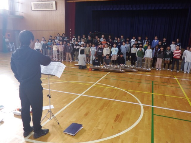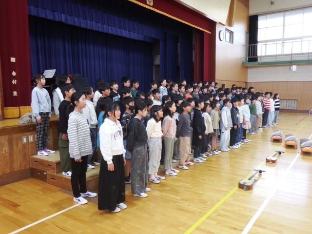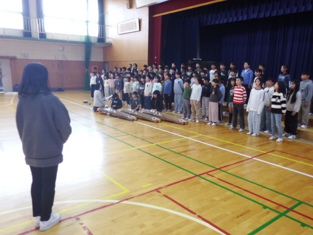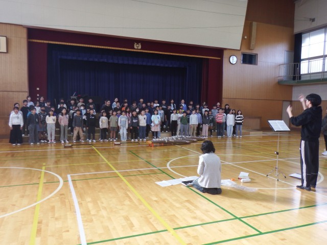 4年生 音楽 犬山市音楽会に向けて練習を行いました。「さくらさくら」、「八木節」体育館に美しい歌声が響いています。