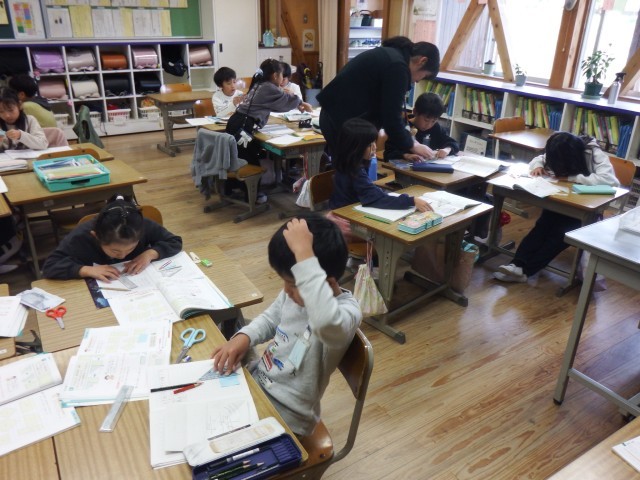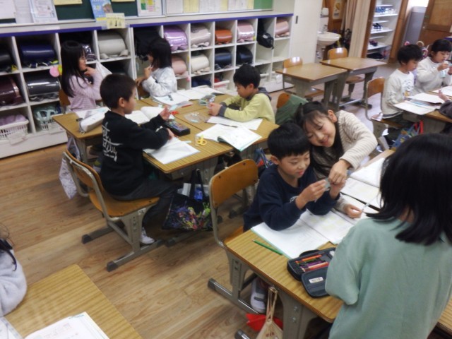 2年生 算数「長方形」今日は、長方形からできた形を調べました。かどの形は?辺の長さはどうかな?グループで考えを深めることができました。